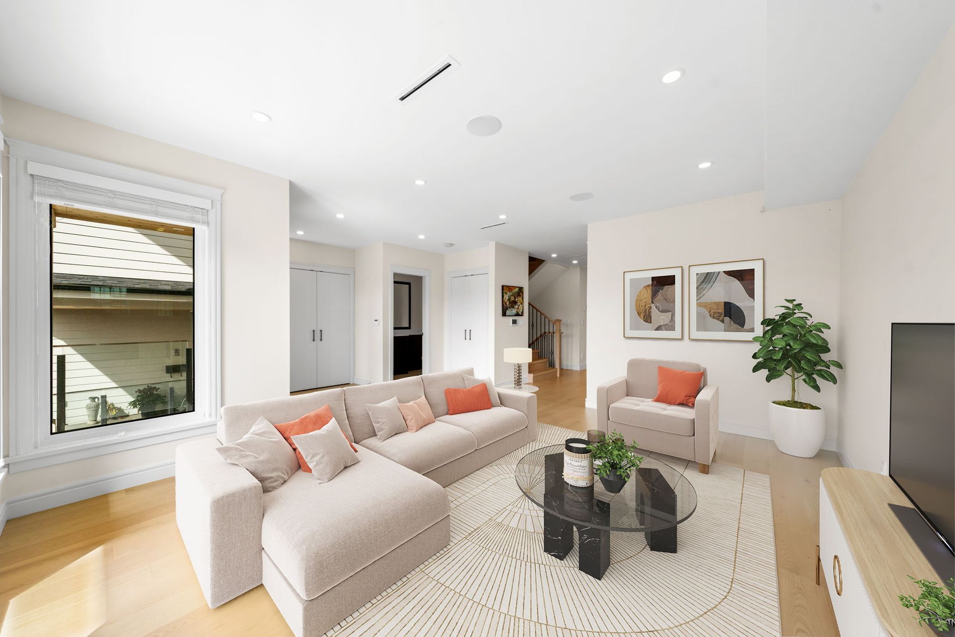 Exquisite City view home in Central Lonsdale! Perched on the high side of the street, enjoy full ocean and city views from the main and top floor, plus 360° views to include the mountains from your 500+ sqft rooftop patio! Custom built and just 4 years old, the home features picture windows fram