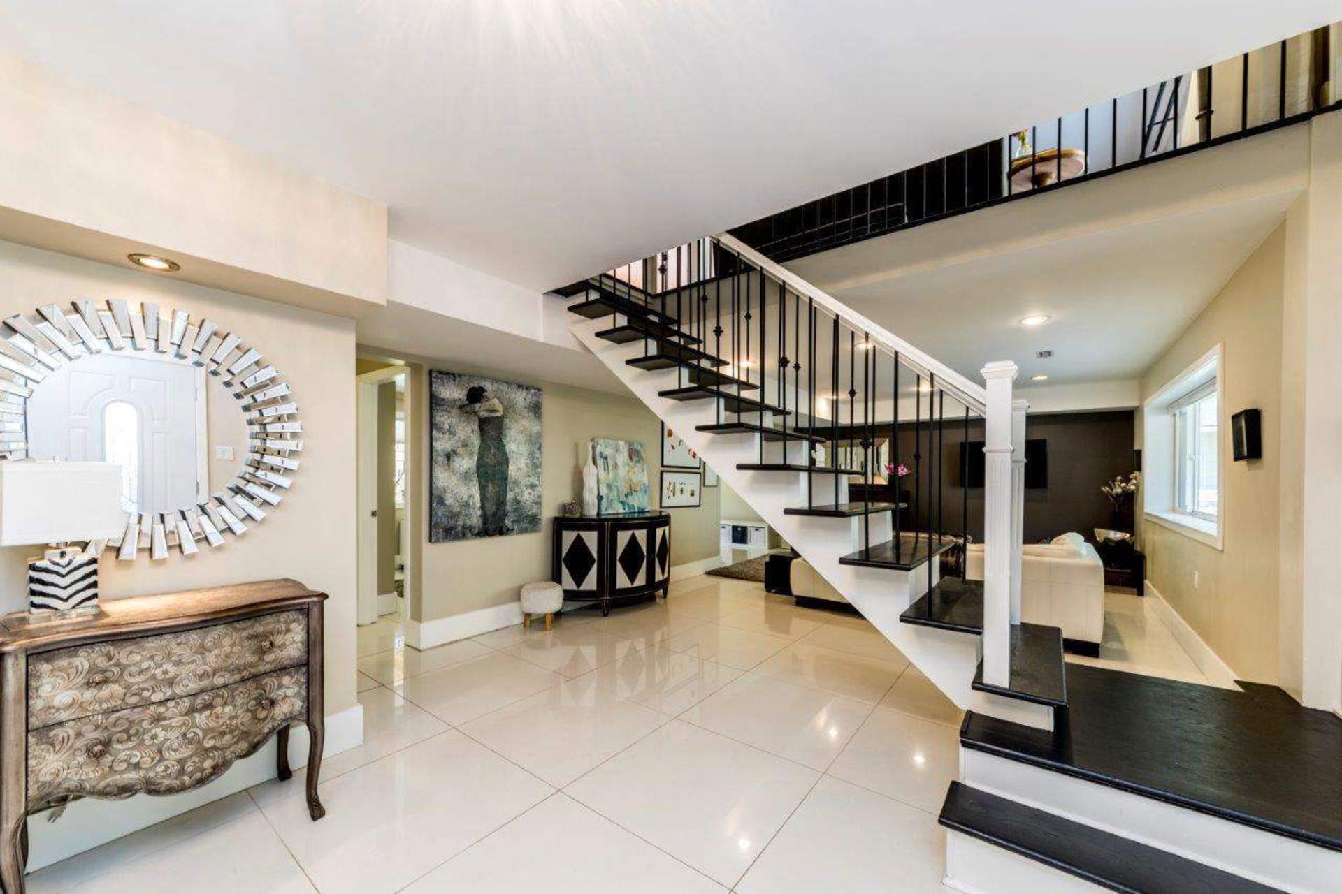 Move to Canyon Heights - beautifully renovated family home with level sunny backyard.Features include large entry foyer with open staircase to main floor with large open plan living,dining and quartz and stainless steel kitchen with french doors opening onto large deck great for summer BBQs!Main also features 3 bedrooms including master bedroom with spa like ensuite and full bath. Lower level features large rec room, fourth bedroom, office, full bathroom and kitchen - ideal for nanny.Bright, spacious and just blocks to Montroyal Elementary and a short drive to Handsworth Secondary.