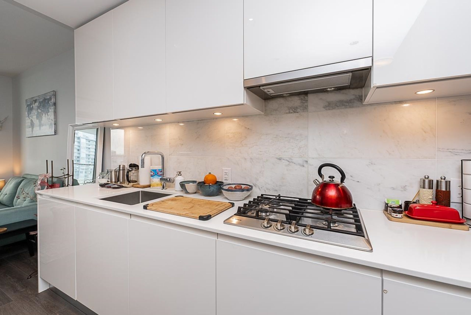 THE AMAZING BRENTWOOD TWO! This 2 bed, 2 bath west facing unit has over 400+ sqft covered balcony which gives you a panoramic view of Downtown Vancouver. You have to come see it to believe it. BOSCH Stainless Steel appliances, European cabinetry, stone counter tops, marble back splash, Grohe fixture